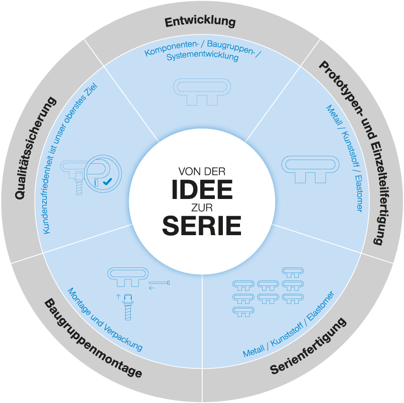 Metall, Kunststoff oder Elastomer? Wir entwickeln und fertigen Ihre Serienbauteile technisch und wirtschaftlich optimiert. Dabei sind höchste Qualität, Schnelligkeit und Zuverlässigkeit unsere treibenden Faktoren und haben stets höchste Priorität. Innovative Ideen, individuelle Lösungen und jahrelange Erfahrung bilden die Grundpfeiler unseres Erfolgs. Von einer intelligenten Systementwicklung über eine optimierte Materialauswahl sowie dazugehörige Fertigungstechnologien bis hin zu einem kosteneffizienten Produkt – die Zimmer Group ist dank Expertenteam mit ausgeklügelten Ideen und Lösungen der verlässliche Partner an Ihrer Seite. Dabei ist keine Herausforderung zu groß.