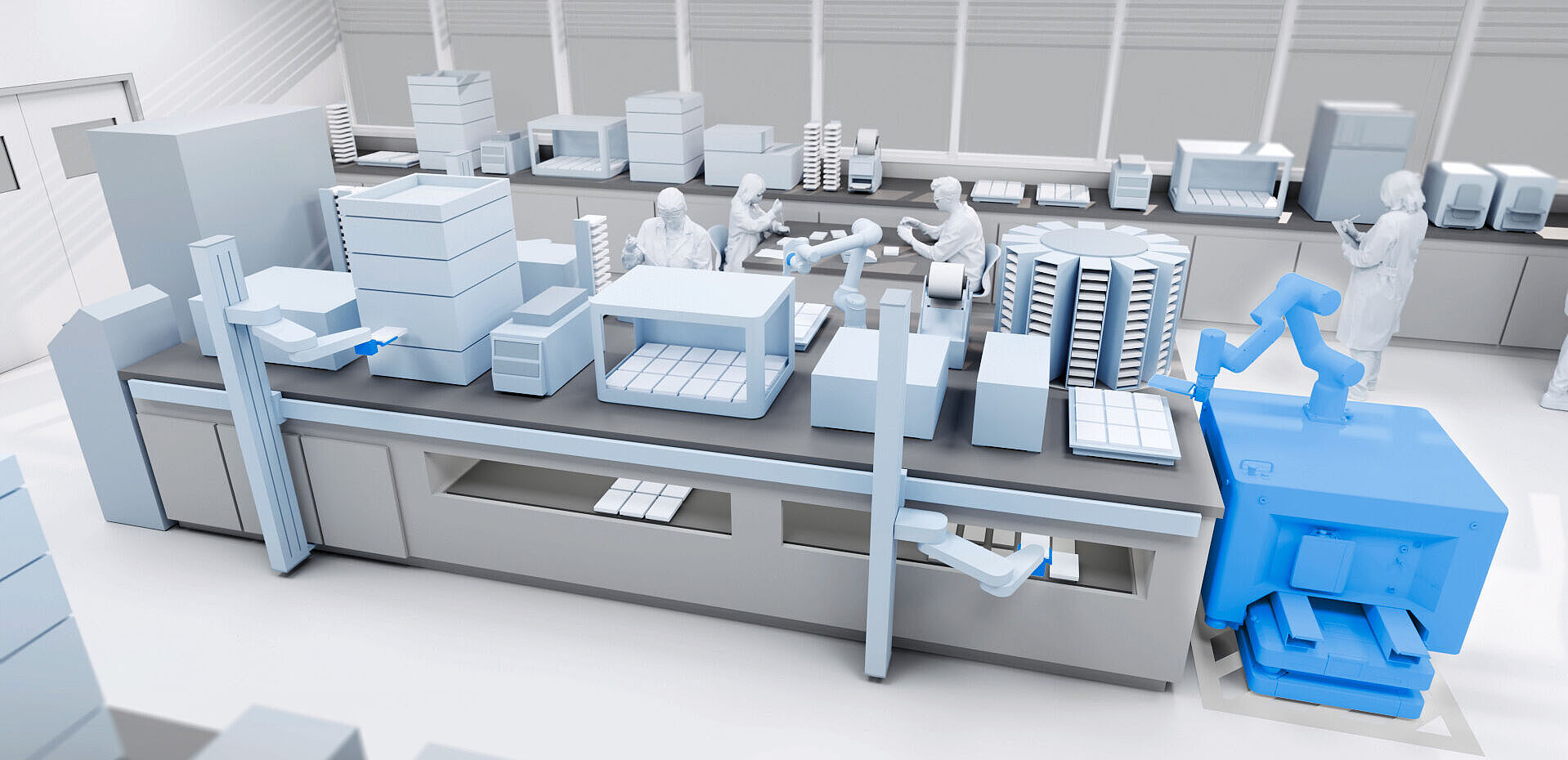Our advanced automation solutions for laboratory environments set new benchmarks in sample processing, analysis and data acquisition. Whether in clinical diagnostics laboratories, biotechnology or environmental analysis – our technologies increase efficiency, minimize errors and enable reproducible results. Experience how state-of-the-art automation revolutionizes your laboratory processes and raises your productivity to a new level. Discover the future of laboratory automation.