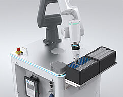 EngRoTec – Solutions GmbH has developed an innovative solution for an international pharmaceutical company that revolutionizes the automation of repetitive laboratory processes. The loading and unloading of microtiter plates was automated with an automated driverless transport system. With its FWR series tool changer and the HRC-02 collaborative gripper, the Zimmer Group made a significant contribution to this optimal solution.