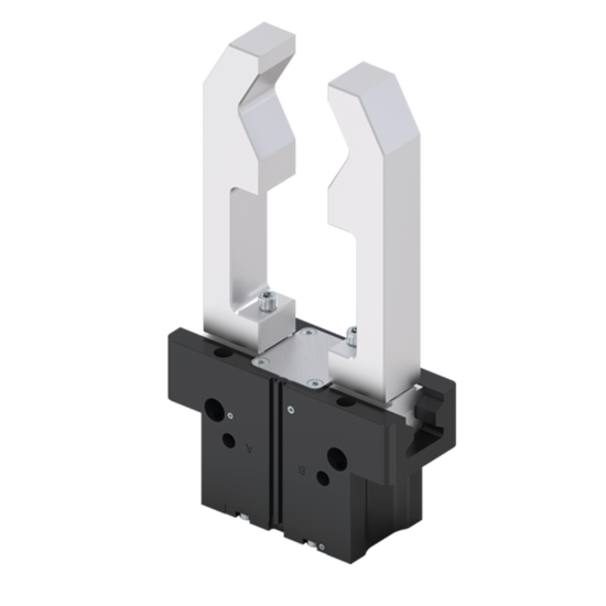 Die Greifbackenrohlinge sind in den Ausführungen Aluminium (AL) und Stahl (ST) verfügbar und werden direkt über die im Lieferumfang befindlichen Schrauben am Greifer montiert. Die dazu nötigen Passungen für die Zentrierhülsen sind dafür bereits vorhanden. Pro Greiferbacke wird eine Universalbacke benötigt.