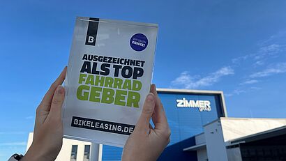 Die Zimmer Group wurde von Bikeleasing‑Service Deutschland als „Top-Fahrradgeber“ ausgezeichnet. Mit diesem Titel würdigt Bikeleasing-Service Unternehmen, die sich in besonderem Maße dafür engagieren, ihren Mitarbeitenden Dienstrad-Leasing als Benefit anzubieten – und somit Gesundheit, Umweltbewusstsein und Mobilität in den Arbeitsalltag zu integrieren.