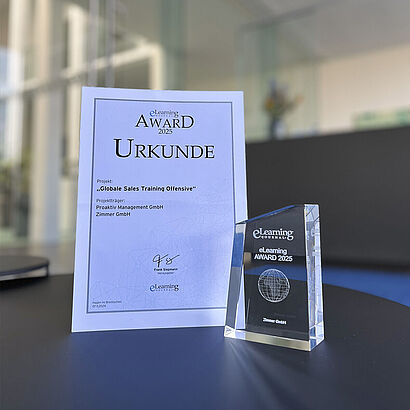 Die Zimmer Group wurde mit dem eLearning AWARD 2025 in der Kategorie "Blended Learning – Schwerpunkt: Globale Vertriebsqualifikation" ausgezeichnet. Diese Ehrung würdigt das innovative Blended-Learning-Programm des Unternehmens, das darauf abzielt, weltweit einheitliche Vertriebsstandards zu etablieren und gleichzeitig lokale Besonderheiten zu berücksichtigen.