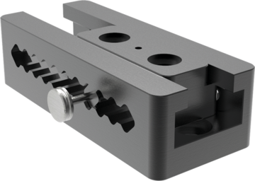 Steel in steel guide Enables use of extremely long gripper fingers - Mounting block