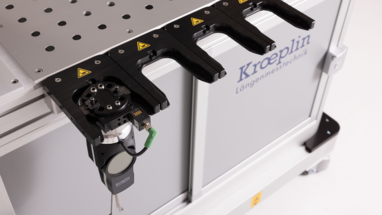 La medición durante la producción es una parte indispensable de los procesos de producción modernos, especialmente en series pequeñas y medianas y en la fabricación por encargo. Pero, ¿cómo se puede garantizar que los diámetros interiores y exteriores o las geometrías de las ranuras se midan con precisión y eficacia, incluso con componentes variables? Kroeplin GmbH afronta este reto con una plataforma integradora: el robot de medición Kroeplin (KMR), desarrollado para integrar controles de calidad totalmente automatizados en la producción. El corazón del KMR es un sistema de cambio flexible que permite intercambiar diferentes dispositivos de medición en cuestión de segundos. Esto es posible gracias al cambiador de herramientas de la serie FWR50 de Zimmer Group, que puede funcionar de forma puramente mecánica y sin fuentes de energía adicionales. Para manipular los componentes se integraron soluciones de agarre de Zimmer Group. La pinza HRC de la serie HRC03 garantiza que las tareas de pick-and-place no sólo sean precisas, sino también especialmente eficientes. El KMR se complementa con una pinza de tres mordazas de la serie GPD5000, especialmente diseñada para componentes redondos y que garantiza la precisión de repetición necesaria al sujetar.