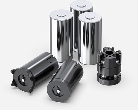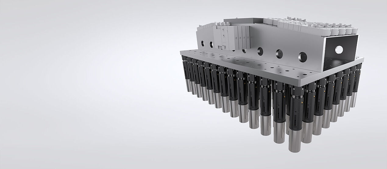 Il principio modulare consente di adattare in modo ottimale la pinza al processo specifico. La pinza può essere combinata sia con un rilevamento della posizione del pistone che con un riconoscimento della presenza della batteria. Inoltre, sono a disposizione anche compensatori assiali che, associati a piastre di centraggio, compensano le posizioni errate delle celle che si verificano in diversi processi produttivi.