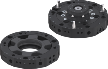 유체, 전기 신호 및 부하, 통신, 공압 및 진공 등의 전송을 위해 선택적으로 사용 가능한 에너지 요소를 측면으로 연결합니다. - 로봇 플랜지