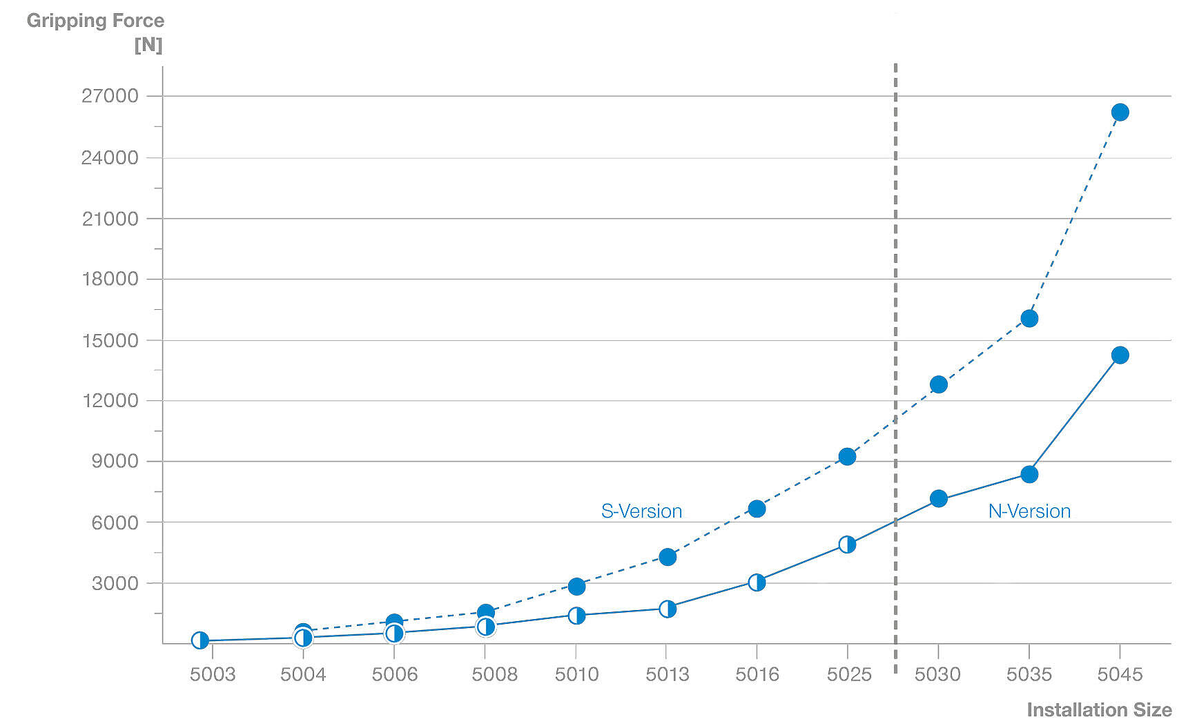 더 높은 파지력을 S 버전의 동일한 설치 크기로 이용할 수 있습니다.