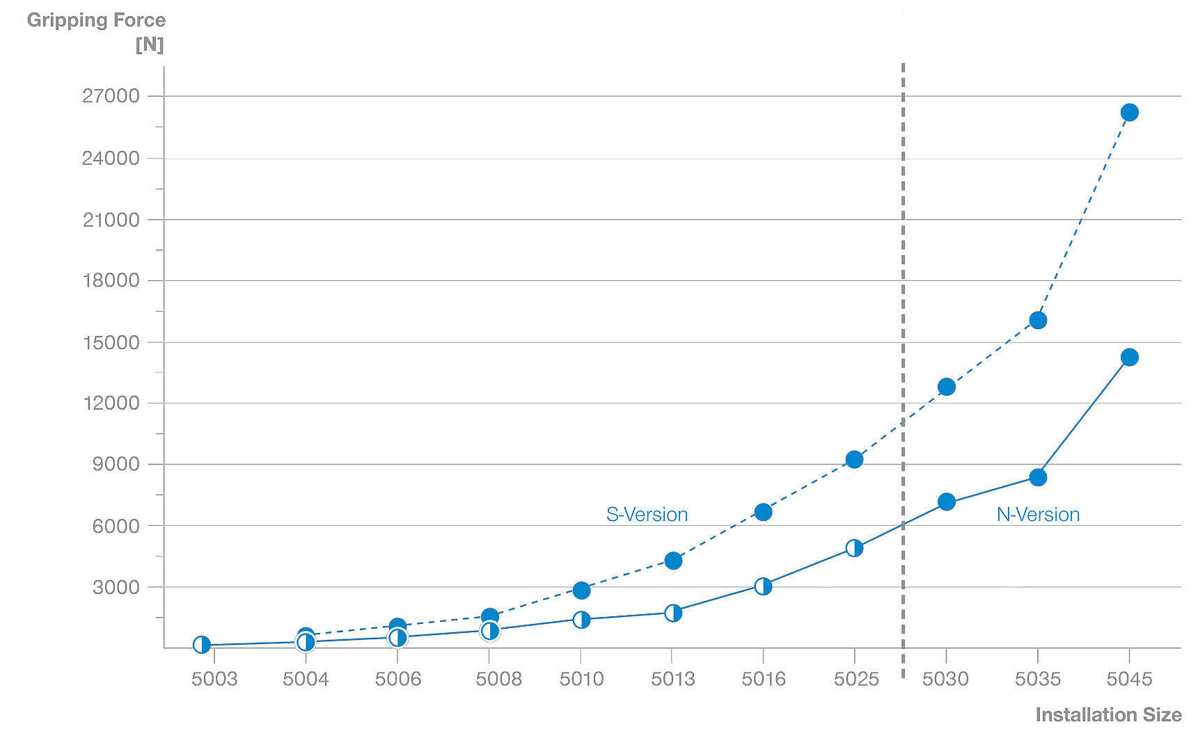 Prehľad sily uchopenia sérií GPP5000 a GPP5000AL