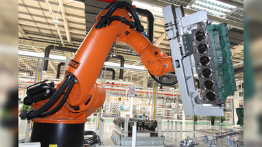 Für einen chinesischen Kunden sollte eine 120 kg schwere Kurbelwelle sehr exakt und unter Berücksichtigung der richtigen Lage in einen Motorblock eingelegt werden. Mit dem gleichen Greifer musste auch der schwere Motorblock (500 kg) gegriffen werden. Eine weitere Herausforderung dabei war die besondere Rücksichtnahme auf das Gewicht des Greifers.