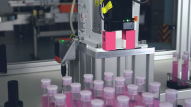 A state-of-the-art labeling system designed for handling products with challenging shapes or surfaces. Perfectly suited for materials that require a high degree of protection and must avoid direct human contact. Our GEP2000 small parts gripper certified for cleanrooms in combination with an EPSON SCARA robot: