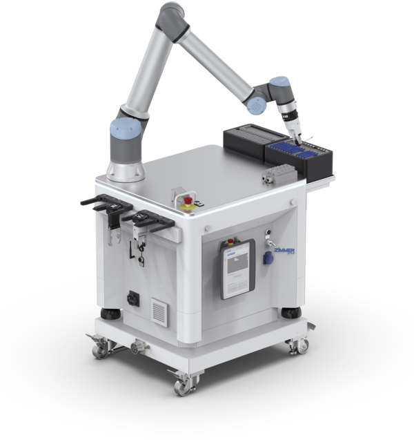 Travaux d’installation, tâches de pick-and-place ou chargement de machines, peu importe ce que vous souhaitez réaliser : ZiMo vous assiste là où vous en avez besoin. La cellule de robot compacte permet un positionnement simple et très flexible dans votre installation. Une mise en service simple et un logiciel convivial font du ZiMo la solution d’automatisation optimale, même pour les petites et moyennes entreprises. L’acquisition économique et l’intégration rapide optimisent vos processus de production et portent l’efficacité et la qualité de votre production à un niveau supérieur. ZiMo est également compatible avec les cobots Universal Robot de la série UR3e, UR5e & UR10e. Découvrez la polyvalence de la cellule de robot !