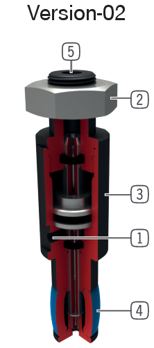 grande force de maintien par un coefficient de frottement élevé retour à la position initiale sans pression d´air - Alésage de passage